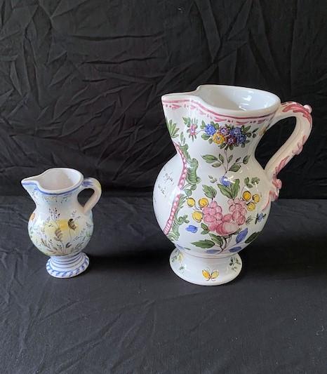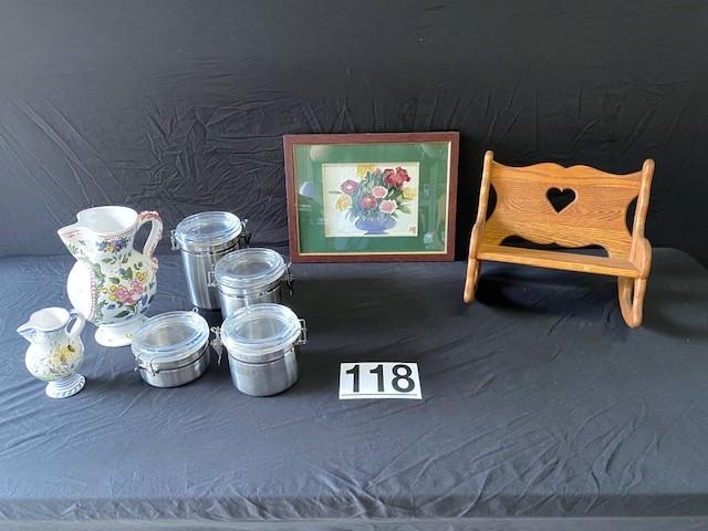 Includes a floral piece, miniature rocker, canister set, and two Italian ceramic pitchers. Total of 9 pieces.