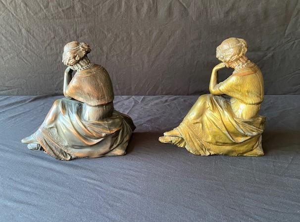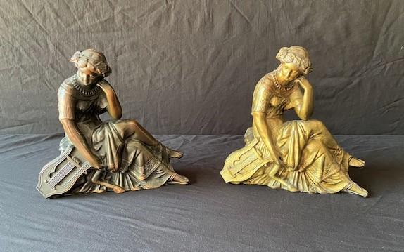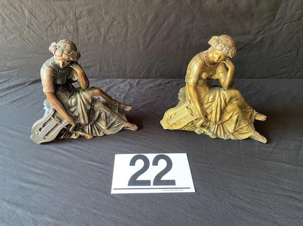 Both depicting a seated female with harp. Toppers only. Estimated weight of lot: 10lbs. Measurement: 8 1/4"H x 9"W x 4" (each)