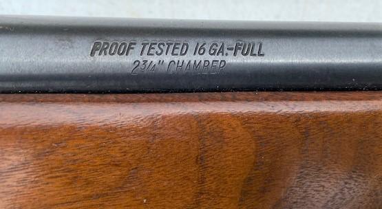 16 gauge full. 2 3/4" chamber. S&R Co. Valid identification required during transfer.
