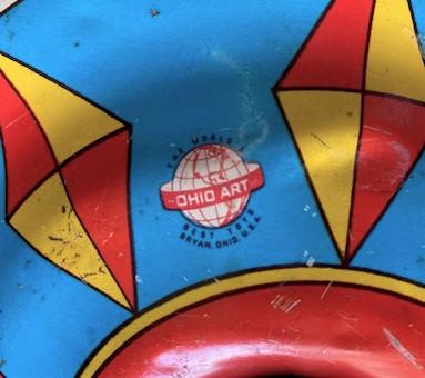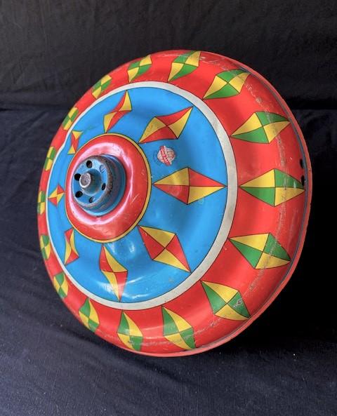 Some paint loss. Tin litho. Working condition at time of cataloging. Estimated weight of lot: 1lbs. Measurement: 8"H x 10"diameter
