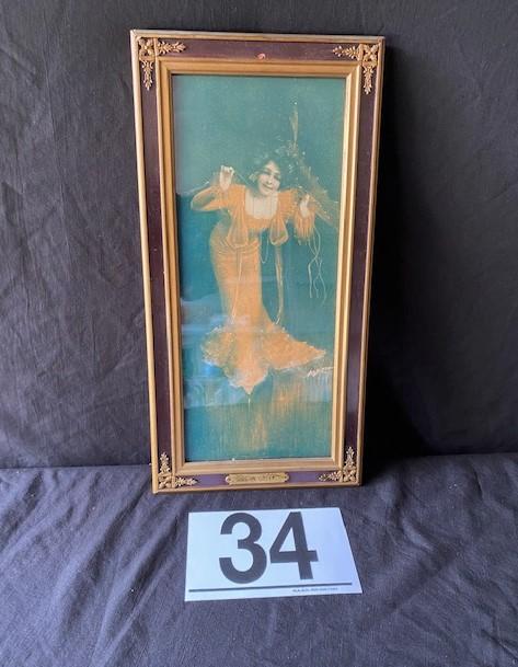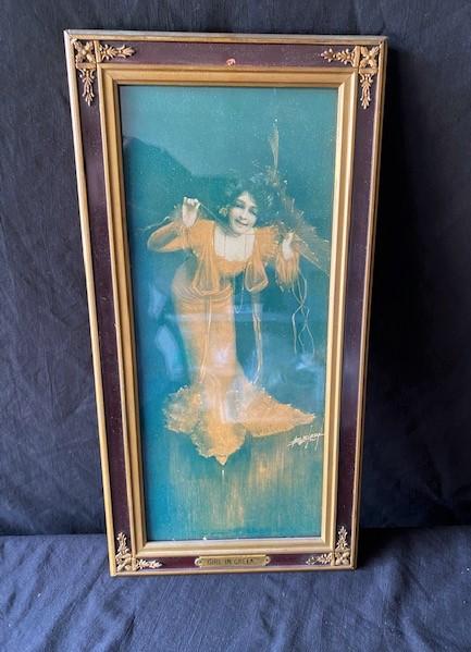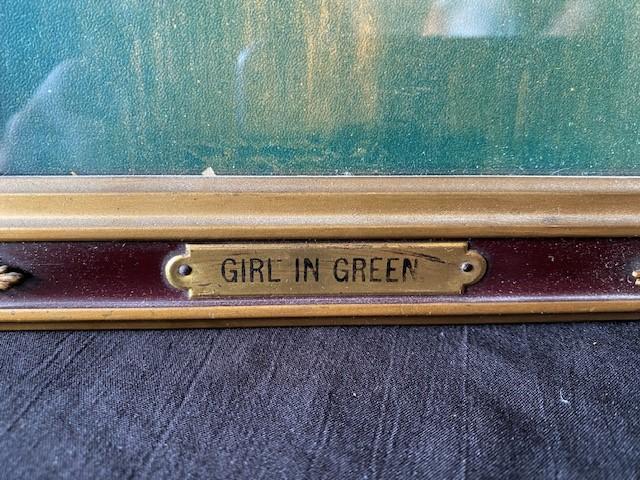 "Girl in Green". Appears to be in original frame. Chipped corner on frame. Estimated weight of lot: 2lbs. Measurement: 16" x 9" x 1"