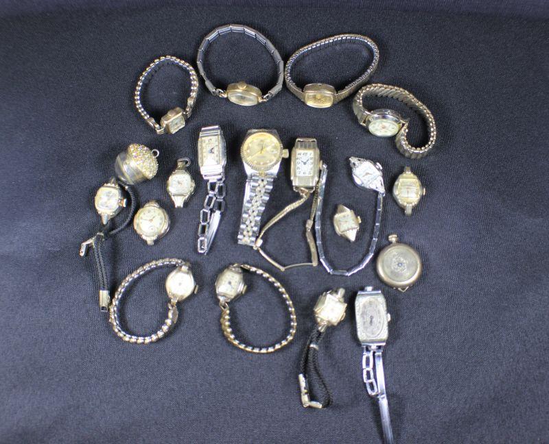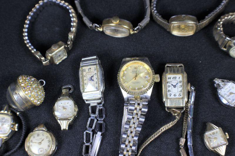 Some of these watches are gold filled. Rolex is NOT confirmed; sold as is. Makers include: Timex, Hanover, Wyler, Whittnaer & more.