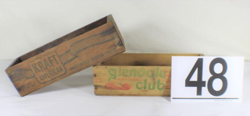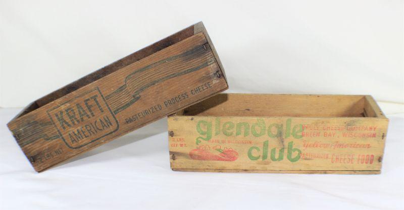 1940s Glendale Club Cheese Food 2lbs Cheese Box Measurements: 9 1/8" x 3". Kraft 2lbs American Cheese Box Measurements: 9 1/8" x 3".