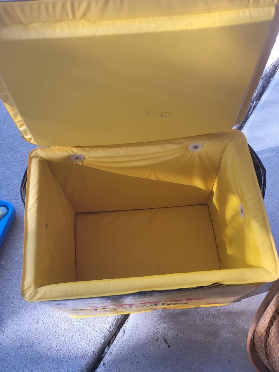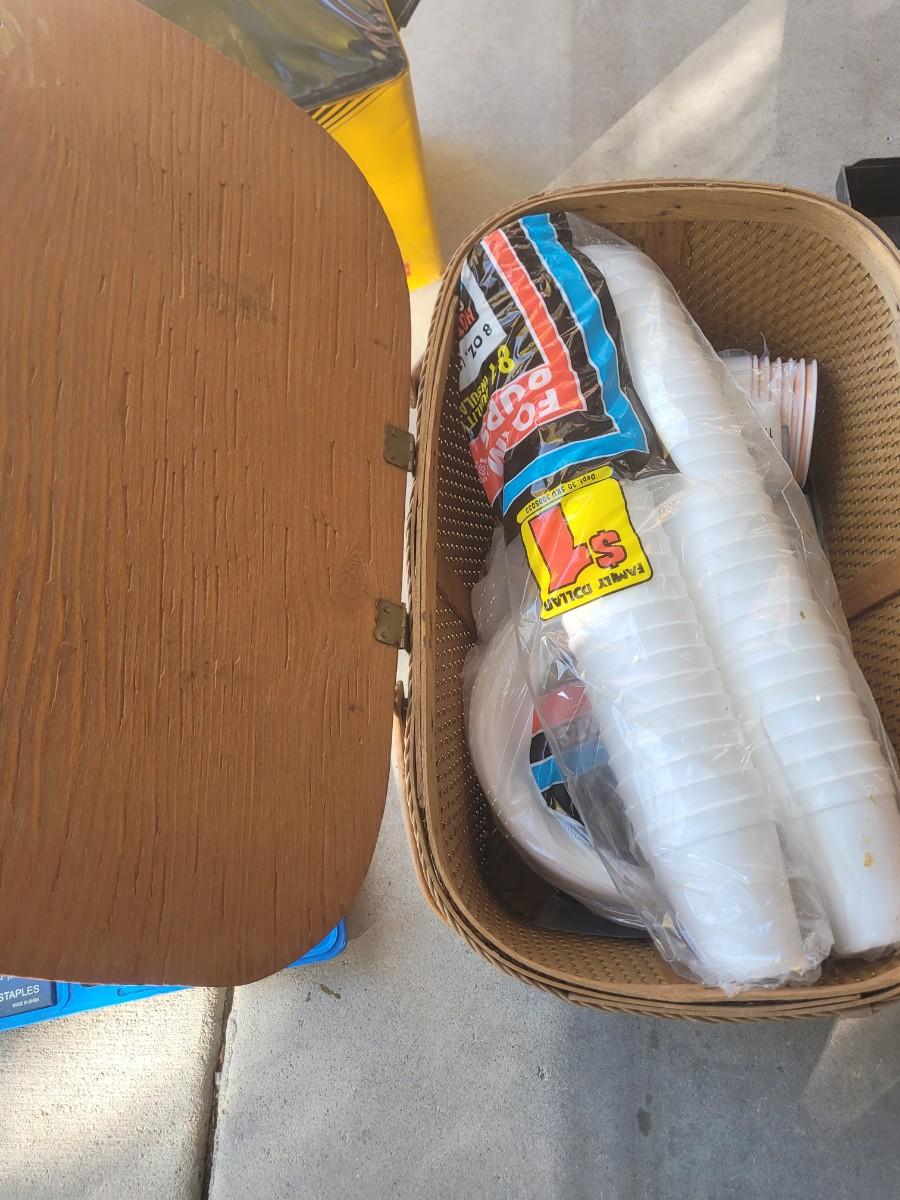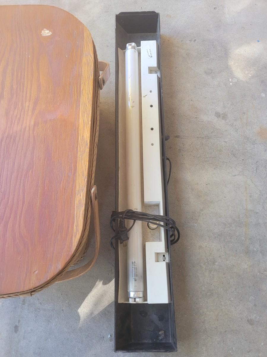 As pictured, picnic basket has stryrofoam items in it, light works, kodak cooler is well insulated and in good shape.