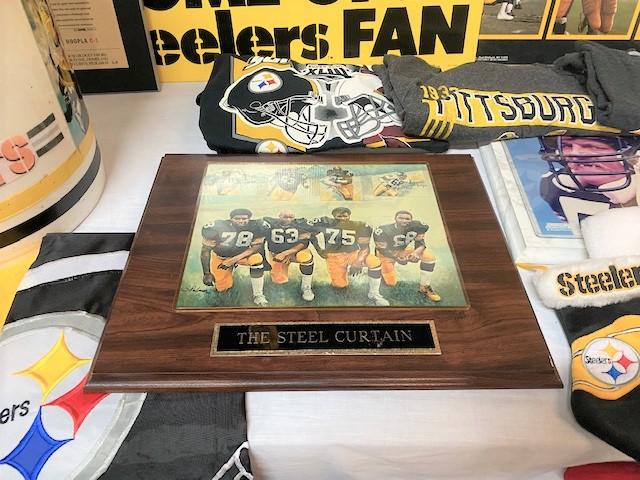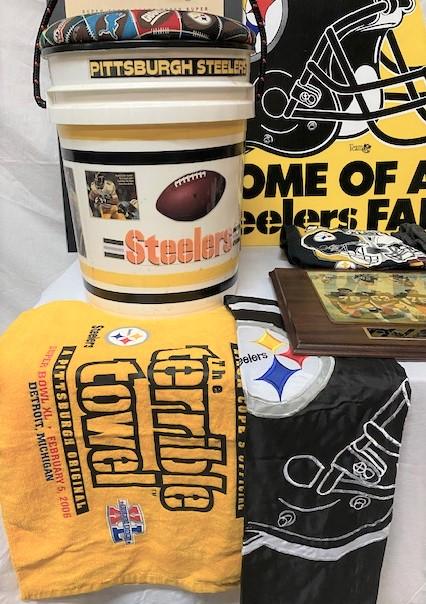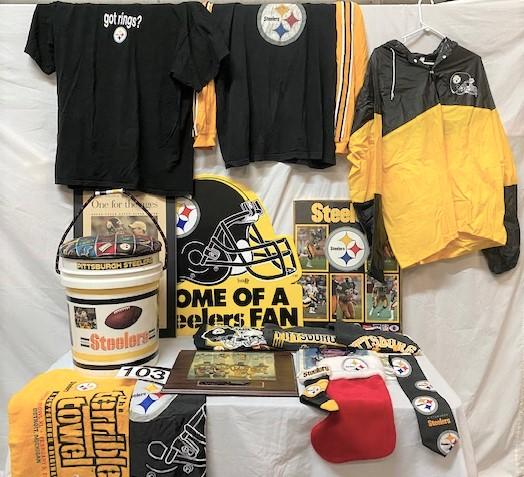 Some is vintage. Includes: 3 T-shirts, wind sock, 2 team plaques, ties, 5 gallon bucket seat & more