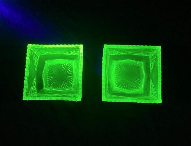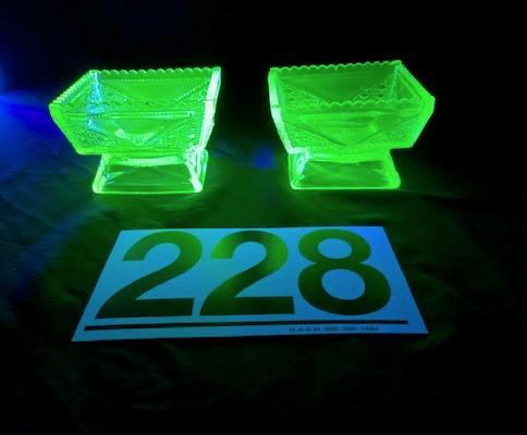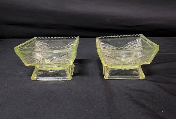 LOT#U228: Pair of Vaseline Glass Trinket Dishes