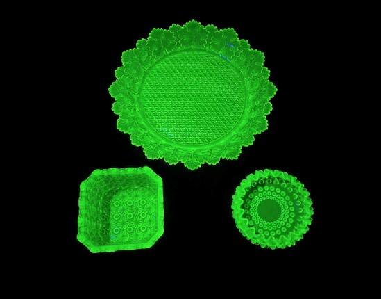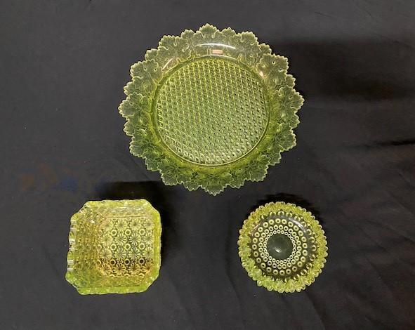 2 raised edged dishes & a dish. Estimated weight of lot: lbs. Measurement: 11" diameter (dish) // 3 3/4"H (raised dish)