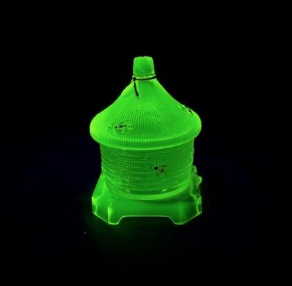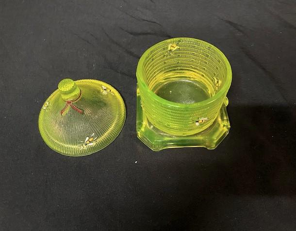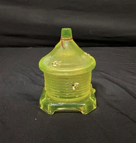 LOT#U238: Marked "Boyd" Honey Pot Beehive Vaseline Glass