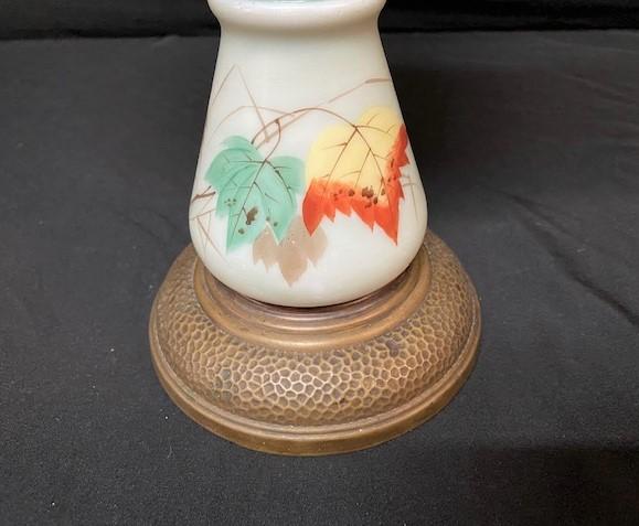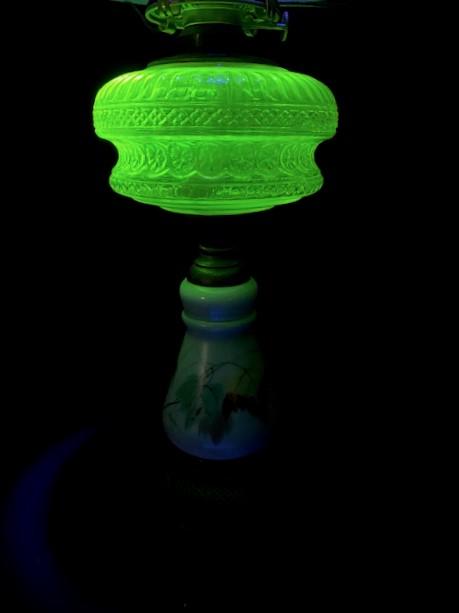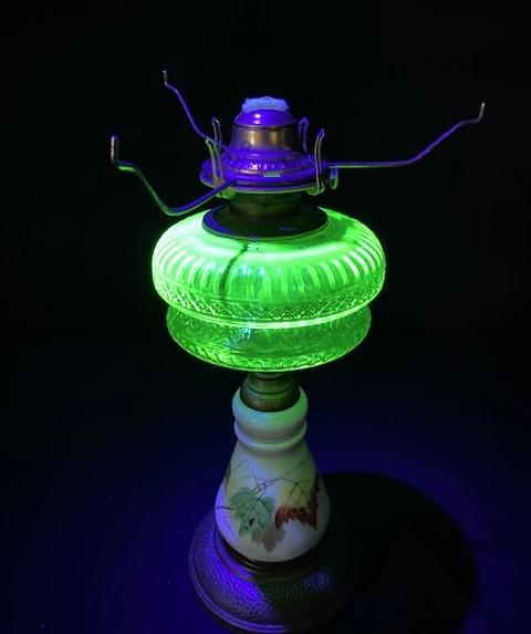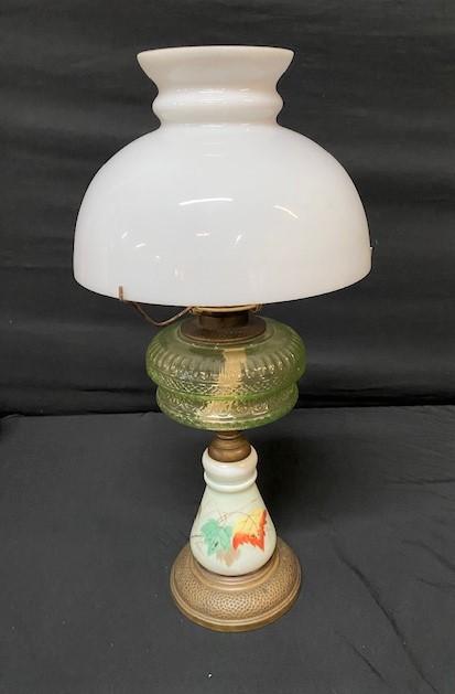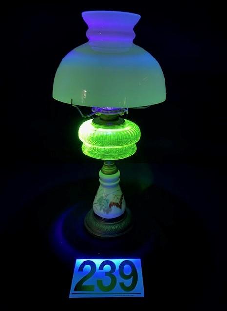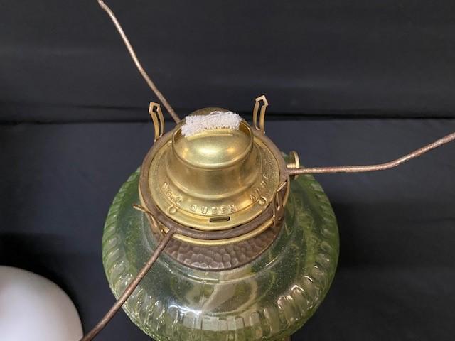 LOT#U239: Vaseline Glass Kerosene Lamp w/ Hammered Copper Base