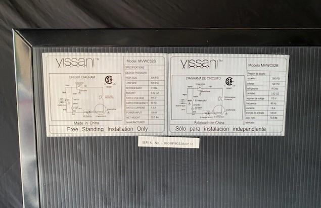 Model#MVWC5208B. Powers on at time of cataloging. 4 tier. Temperature controlled. Measurement: 31"H x 21"W x 20"D