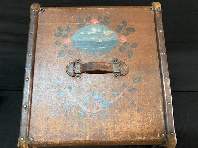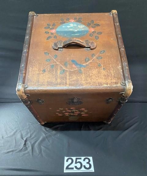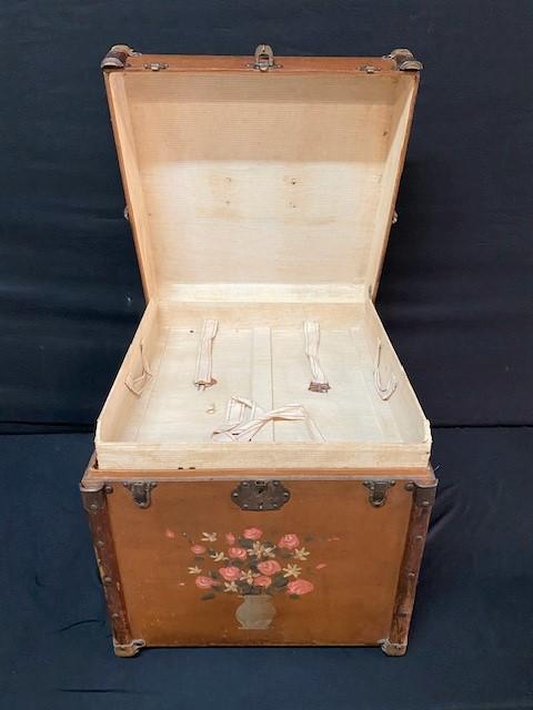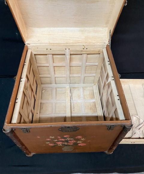 2 tier trunk w/ brass hardware. Estimated weight of lot: 10lbs. Measurement: 19 1/2" x 19 1/2" x 20 1/2"