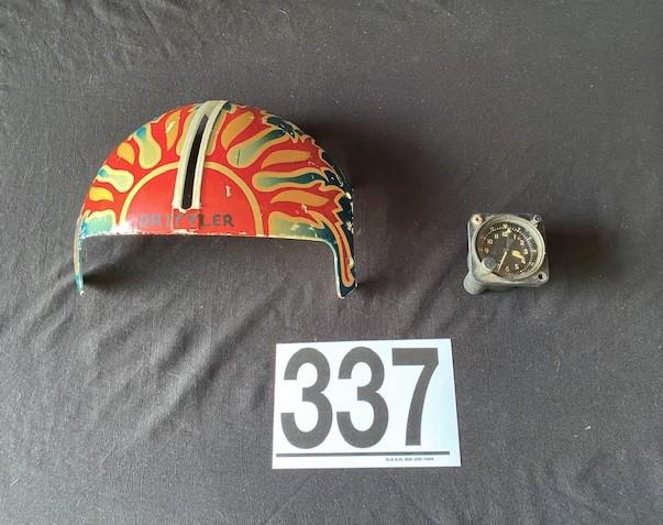 Includes: Waltham Air Craft clock & visor shield. Estimated weight of lot: 2lbs. Measurement: 10" x 7" x 4"