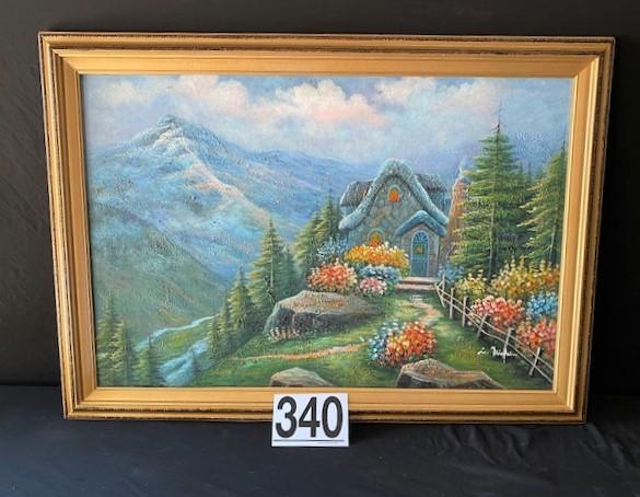 LOT#U340: Illegibly Signed Mountain Scene on Canvas