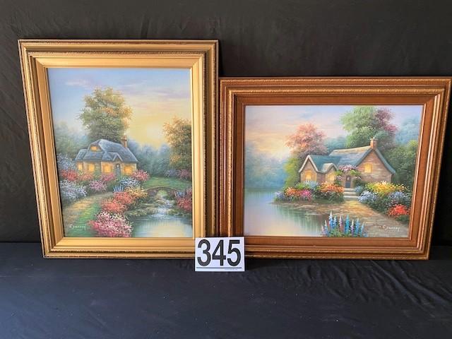 LOT#U345: Pair of "C. Jaffey" Signed Canvas
