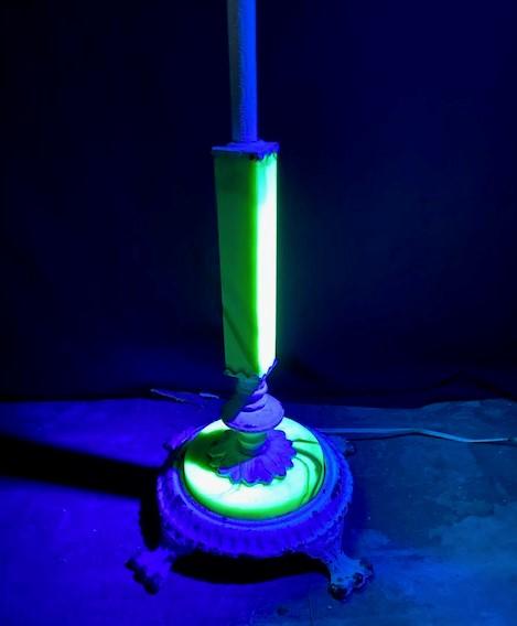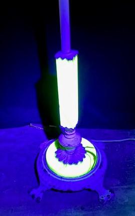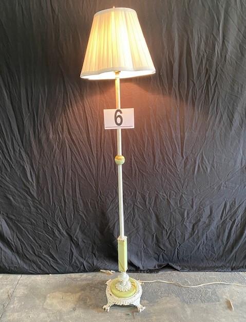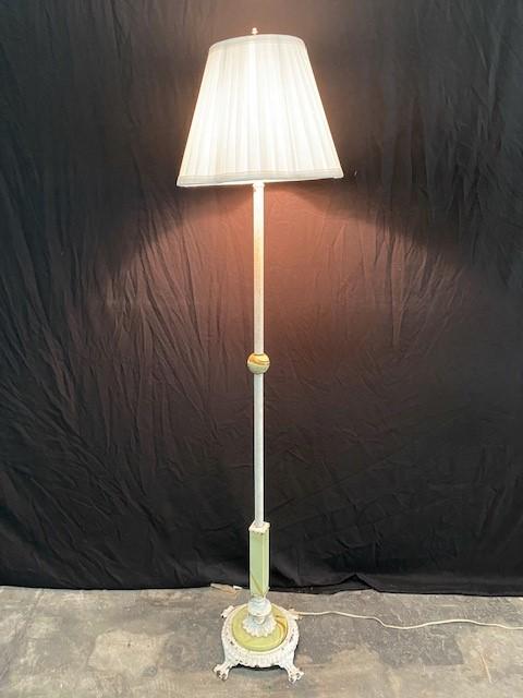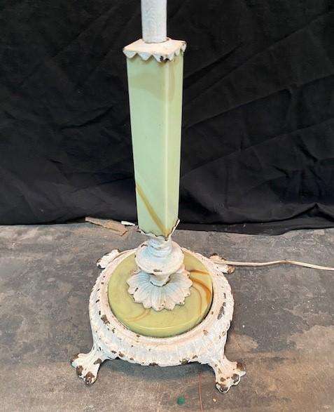LOT#U6: Early Iron Floor Lamp with Vaseline Glass Accents