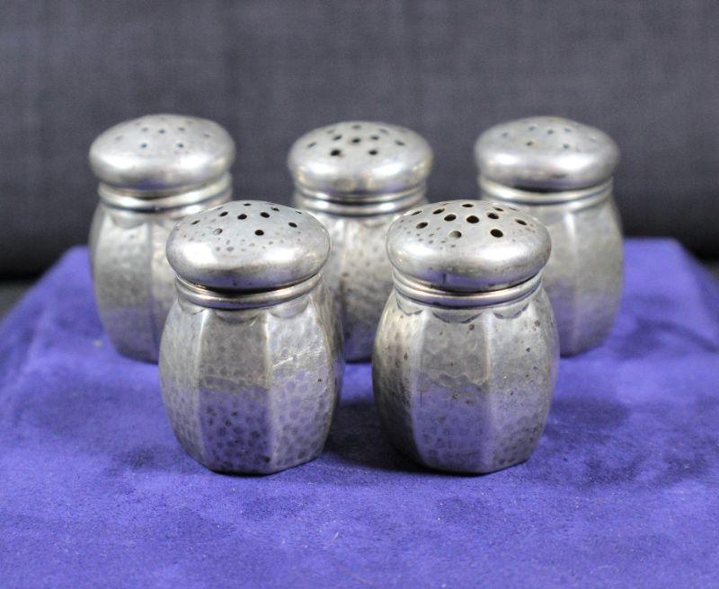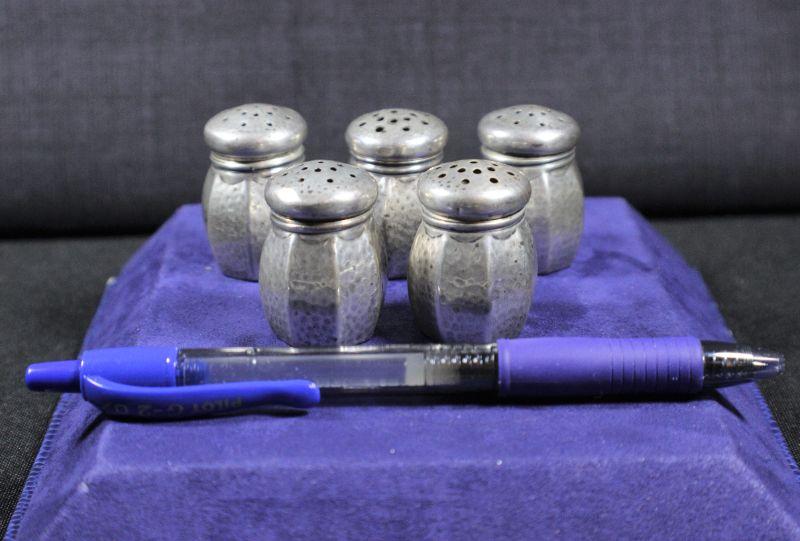 LOT#U71: 5 Hammered Sterling Silver Assorted Salt & Peppers. 40.0g