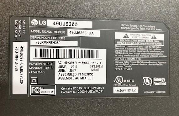 2017. Model # 49UJ6300. With remote. Does not come with stand.