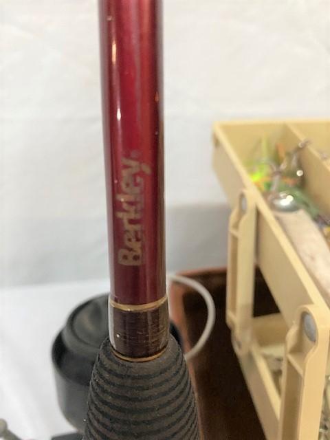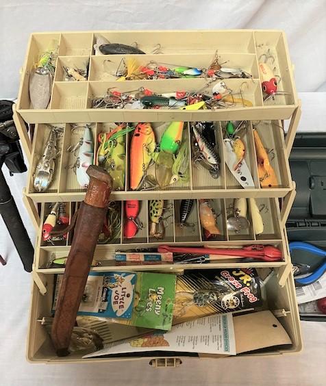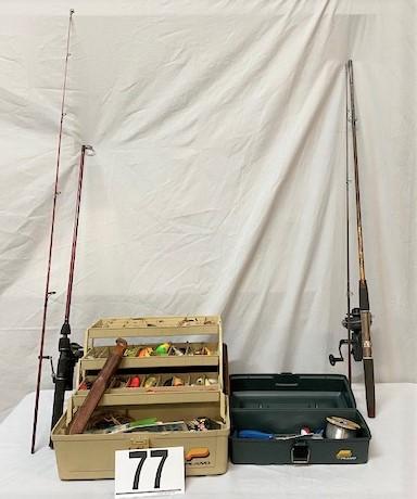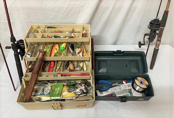 Includes: Burkley Rod, Pflueger Rod, Mitchell 300 Reel, Pfluger 642 Reel & 2 Plano tackle boxes full of lures.
