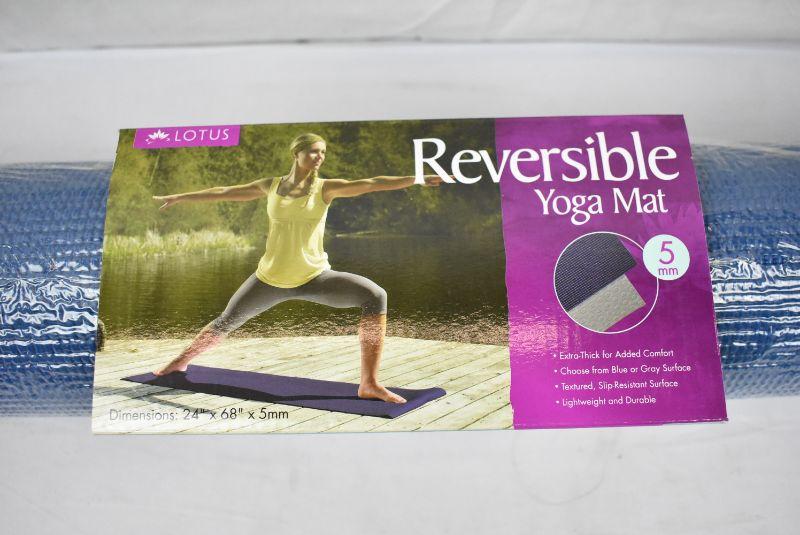 Lotus 5mm Reversible Yoga Mat, Blue & Gray 24" x 68" x 5mm - New