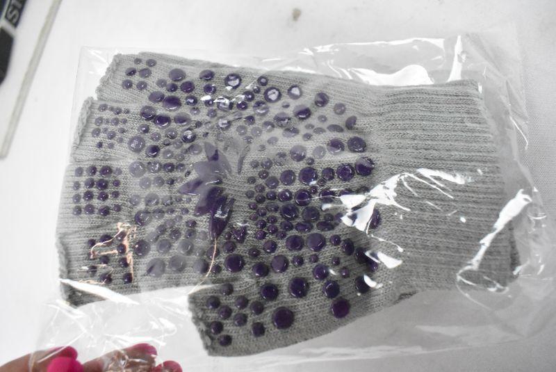 Lotus Non-Slip Yoga Gloves, Gray & Purple - New