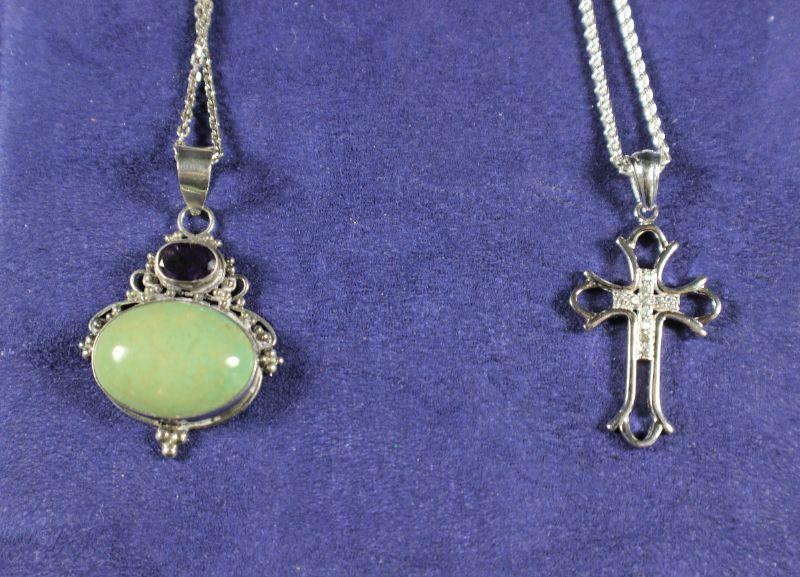 LOT#V253: Pair of Marked Sterling Chains & Pendants [10.9g]