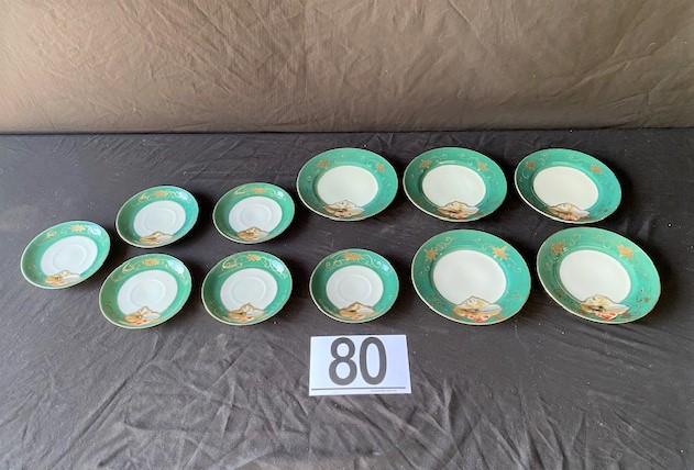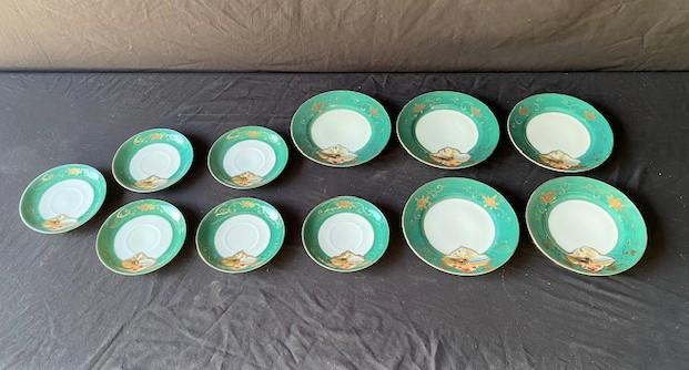 LOT#V80: Mid-Century Japanese Saucer & Plate Lot with 24K Trim
