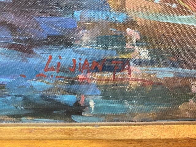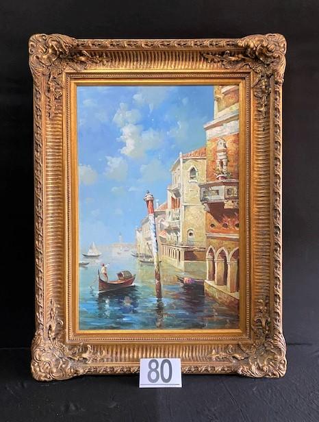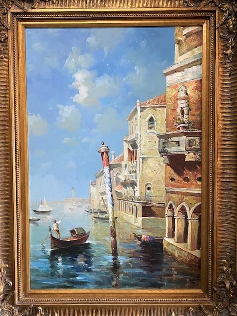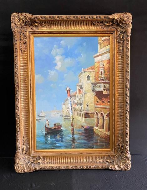 LOT#V80: Signed Venetian Oil on Canvas on Heavy Gilt Frame