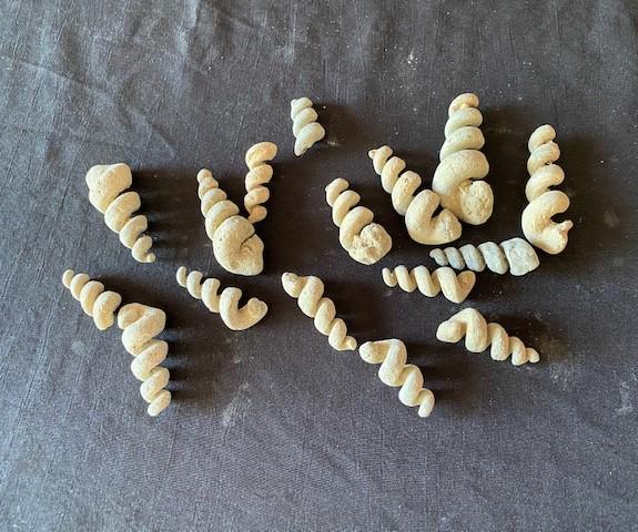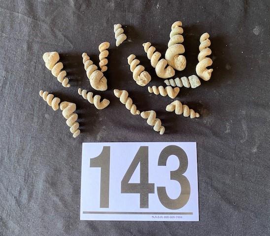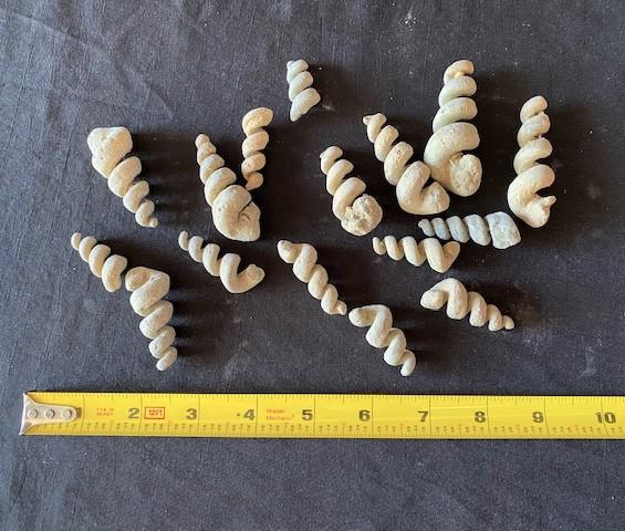 16 pieces. Possibly Turritella Agate. Estimated weight of lot: 1lbs. Measurement: 2 1/2"L (largest item)