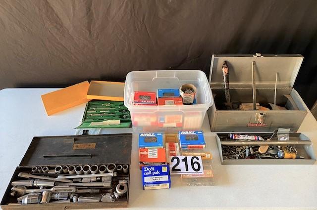 Includes: large socket set, drafting tools, fasteners, nails, Craftsman tool box & more.