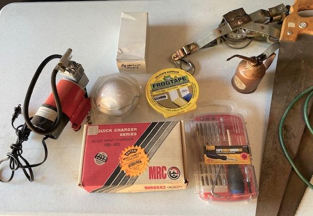 Includes: compressor, charger, painter's tape, saws, extension cord, work station & more.