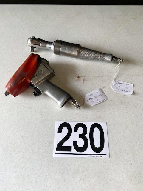 One is a 3/8" drive impact wrench; other is 3/8" drive air rachet. Untested; sold as is. Estimated weight of lot: 10lbs. Measurement: 14"L x 9"W x 3"H (together)