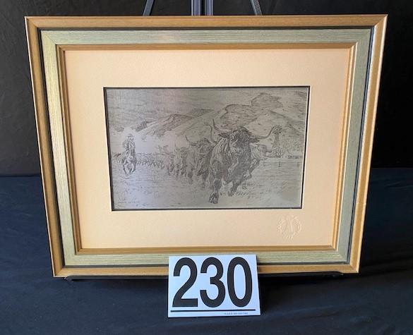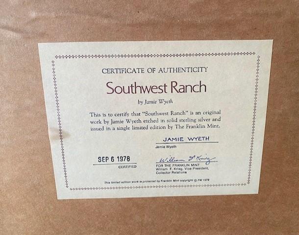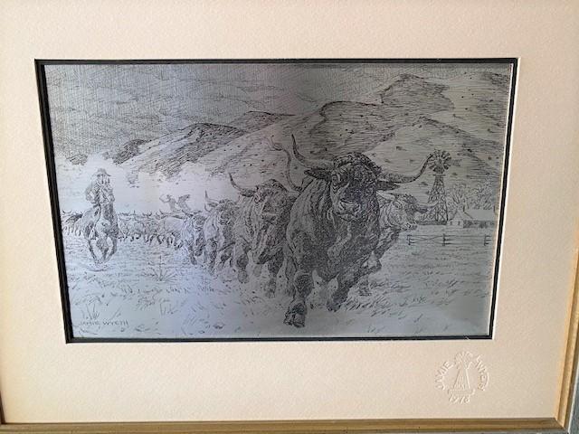 LOT#W230: Sterling Silver Etching by Jamie Wyeth "Southwest Ranch"