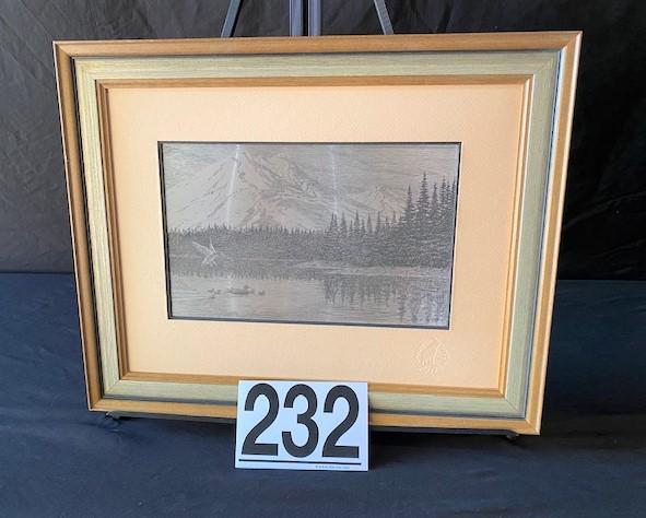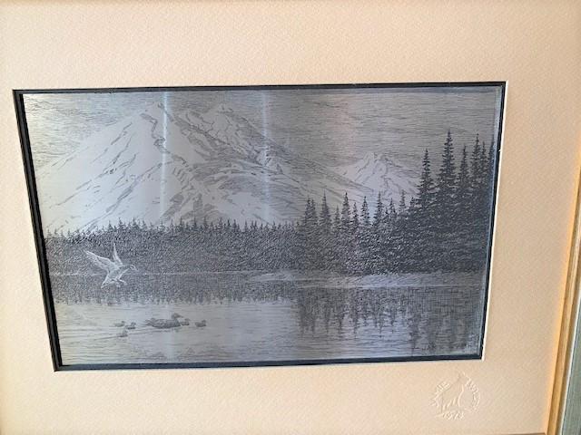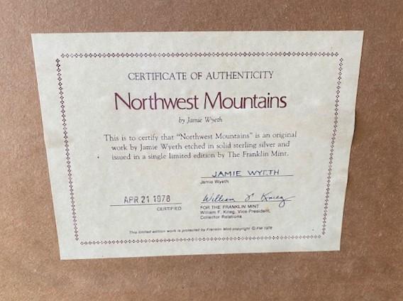 LOT#W232: Sterling Silver Etching by Jamie Wyeth "Northwest Mountains"