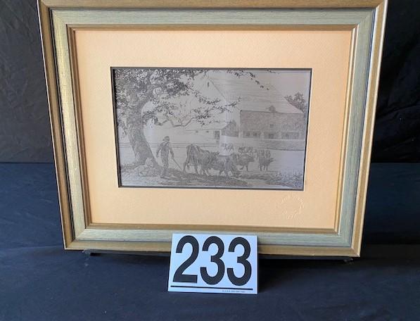 LOT#W233: Sterling Silver Etching by Jamie Wyeth "Pennsylvania Farm Country"