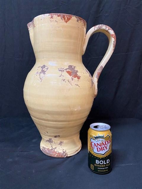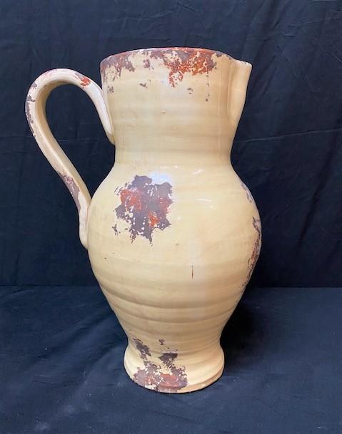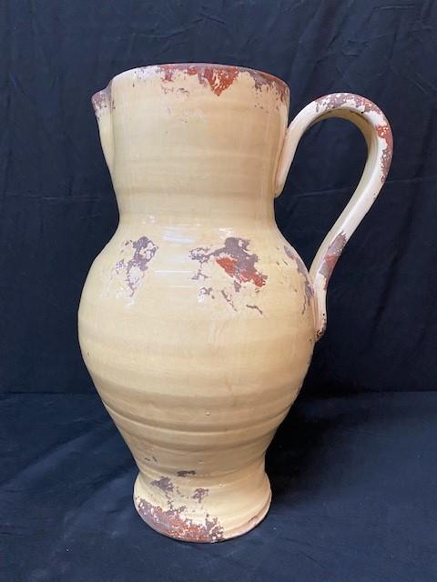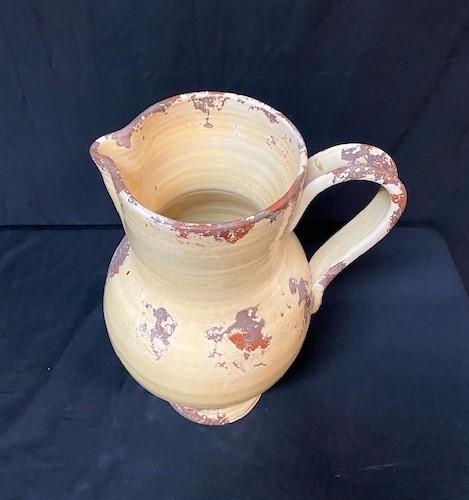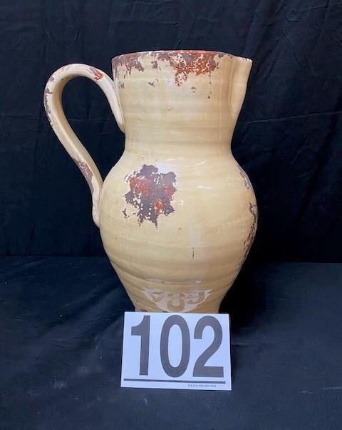 Distressed look. Appears to be slip cast. Estimated total lot weight: 10lbs. Measurement: 17"H x 11"W (with handle)