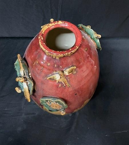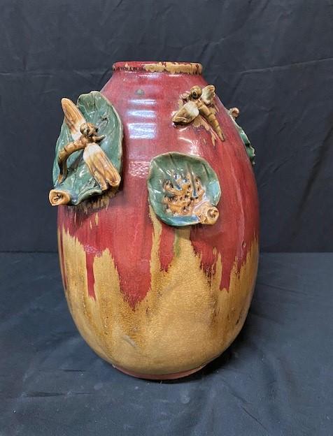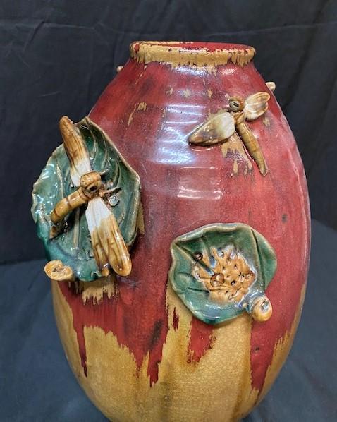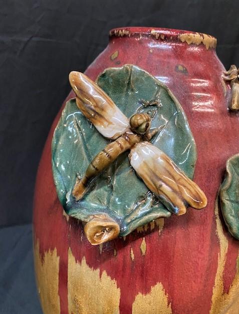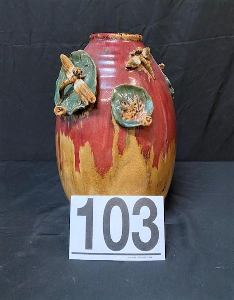 LOT#X103: Drip Glaze Style Vase with Dragonflies