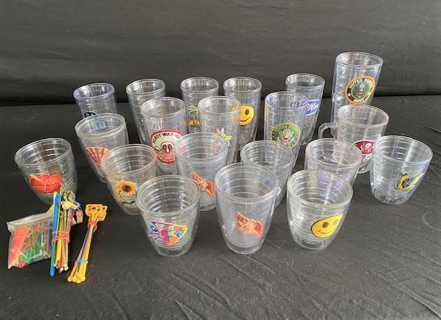 Shells, butterflies, fish, sports, smiley face & more. Swivel sticks & cocktail sticks. Estimated weight of lot: lbs. Measurement: 11" x 11" (box they are in)