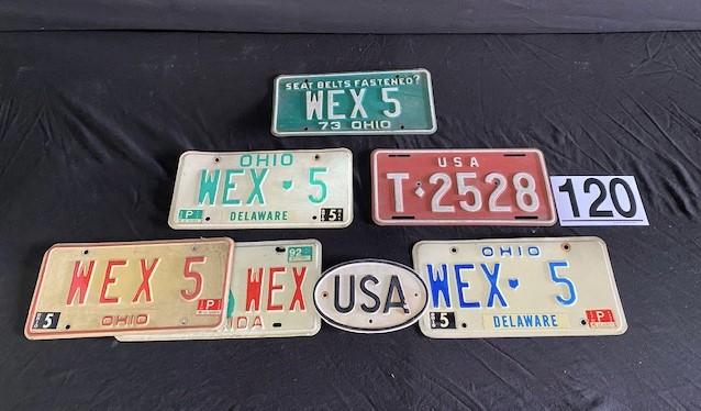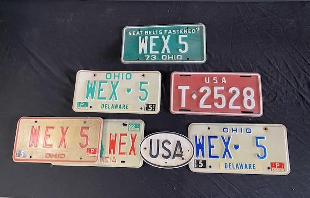 7 plates & one oval USA sign. Estimated weight of lot: lbs. Measurement: 12" x 6 1/2" (each)