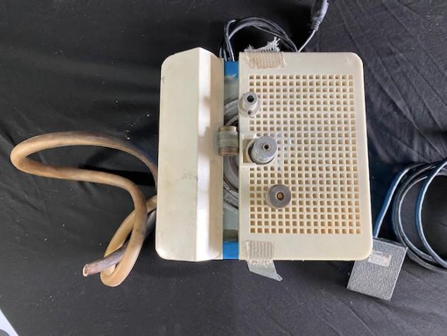 With foot pedal. Working at time of cataloging. Sold as is. Estimated weight of lot: 10lbs. Measurement: 9" x 8"