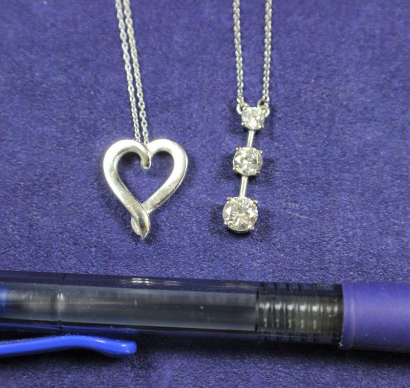 One pendant has CZ stones. Measurement: 16"L & 18"L