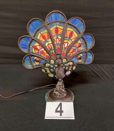 Heavy marble base. Bronze peacock. Estimated weight of lot: 10lbs. Measurement: 19" x 16" x 8"