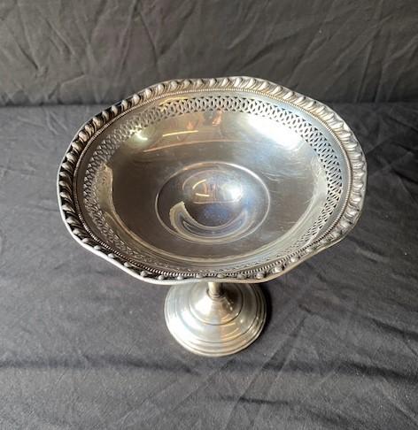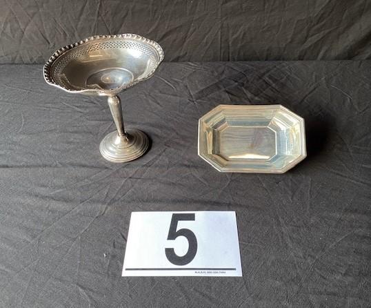 Gorham trinket dish and unsigned weighted ruffle top compote. Estimated weight of lot: 5 lbs. Measurement: 6 1/2"W x 6"Tall (compote: largest item)