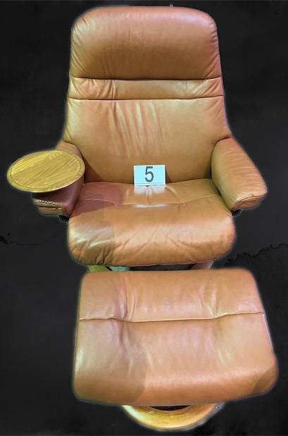 LOT#X5: Stressless Chair  w Stool Unmarked