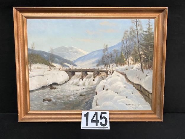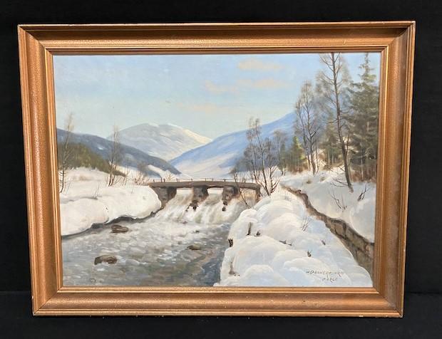 LOT#Y145: Signed Willy Dannerfjord "Winter Valley Thaw" Oil on Canvas