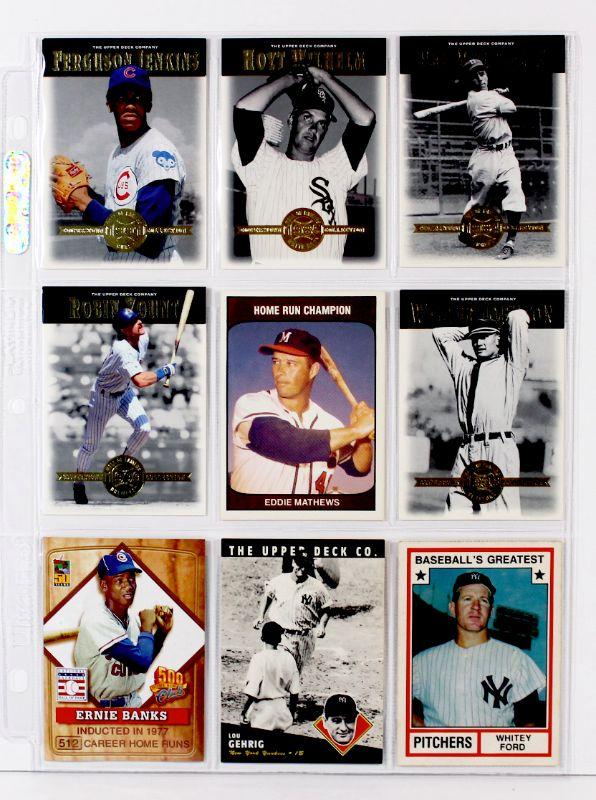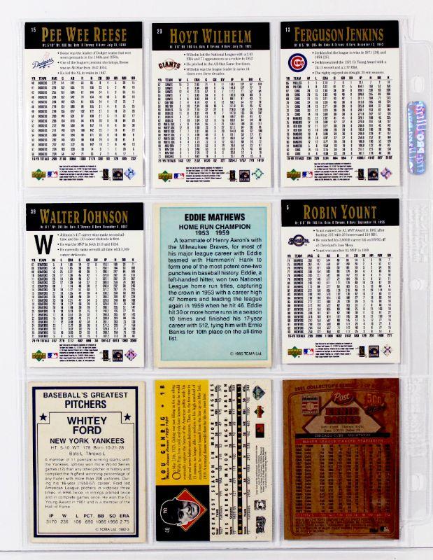 LOU GEHRIG Whitey FORD Ernie BANKS Pee Wee REESE Robin Yount HOF BASEBALL CARDS SET of 9 MINT