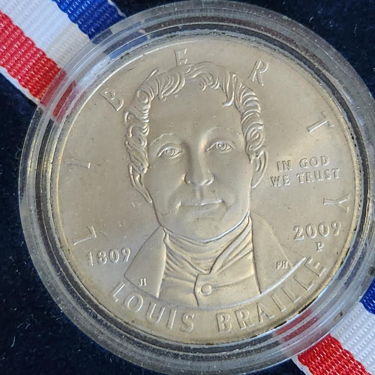 Louis Braille United States $1 One Dollar 90% Silver Coin