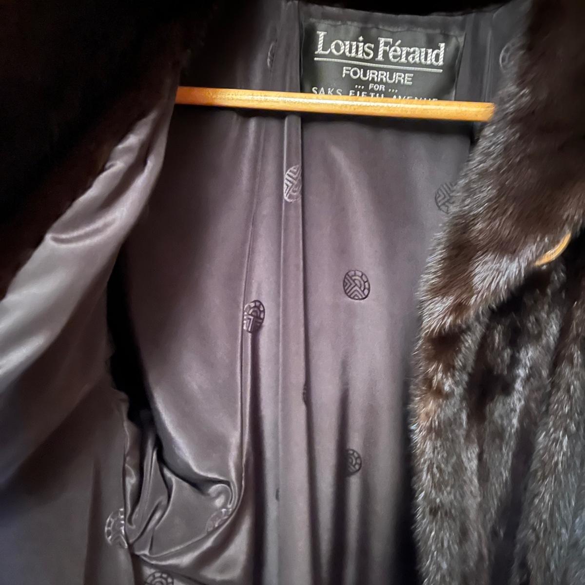 Lot includes a Louis Fèraud fur coat for Saks Fifth Avenue in size six. The inside lining from armpit to armpit measures 21" across. The exterior shoulder measurement is approximately 19" across. Please see photos for details. Dust cover included.