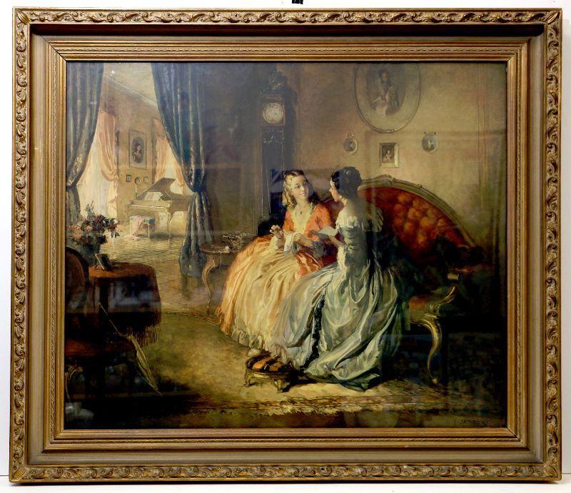 Louis JAMBOR (1884-1955) Vintage VICTORIAN Print "His Letter" Framed 31 x 36