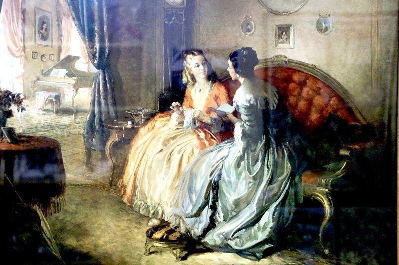 Vintage Victorian color print of the artwork by famous painter Louis Jambor (1884 - 1995) titled "His Letter". The artwork is approximately 26" x 31", framed into wood frame with glass front, frame is 31" x 36", print in original frame dating back to mid 1950's, beautiful piece of art - collector's item!