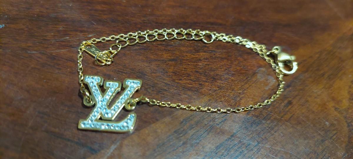 Louis Vuitton rhinestone initial bracelet 18 karat gold overlays stainless steel